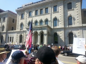 The sidewalk in front of the Federal Courts Building in downtown Richmond on Tuesday morning was much more crowded than it usually is, but less crowded than it should have been. In the early moments of the Family Foundation’s Stand for Marriage rally, my mind was awash with deeply spiritual reflections like, “It’s way too hot for this early in the morning on the second week of May”, and “If I had gotten here earlier, I bet I could have parked closer,” and “If some reporter decides to talk to me, I hope I can remember not to slouch—Diane hates it when I slouch,” and “I think I know that guy over there, but he’s shaved his head, and now I don’t know whether I know him or not—wonder if he shaved his head because he’s having chemo—if I could remember his name, I’d speak to him, but it may not even be him—anyhow, I think he’s too tall. He should be shorter without hair, and he’s not. Lord, please heal that guy’s cancer—unless he just shaved his head ‘cause he’s hot.”