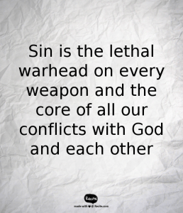The cosmic war that culminated in the decisive battle on the cross began long ago. With Adam’s transgression, sin moved from the realm of possibility to the reality of an individual act. From there it was transmitted as an inescapable and unavoidable human characteristic and has always been the separating issue between God and man. The separation from God that death represents has always been Satan’s objective, but sin is the lethal warhead on every weapon and the core of all our conflicts with God and each other. Hell is the final repository of sin’s prey, but it is unresolved sin that confines its residents there. Jesus’ enemy wasn’t death or the reality of the tomb, and His persecutor on the cross was not hell’s fire and brimstone. It was sin, and not just sin as a detached theoretical concept, but sin in its awful destructive power, with all of its terrifying individual torments. The truth that is both sobering and glorious about the effects of sin that we see inflicted on Jesus’ is that the precipitating sins were not His, because He had none. The sins afflicting Jesus were ours—imputed to Him by the Father, in order to give us hope.