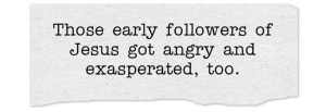 If you’re one of those, cheer up. Those early followers of Jesus got angry and exasperated,
