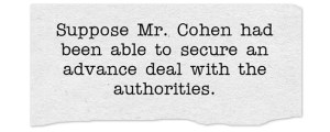 Let me introduce an intriguing scenario. Suppose Mr. Cohen had been able to secure an advance deal with the authorities that in the event that he was ever subjected to the kind of