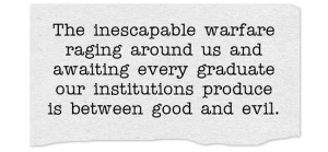 • The inescapable warfare raging around us and awaiting every graduate our institutions produce is between #GoodAndEvil – via @GallaghersPen (Click to Tweet)