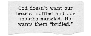 • “#God doesn’t want our hearts muffled and our mouths muzzled. He wants them “bridled.” @GallaghersPen (Click here to Tweet)