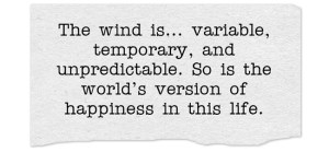 - “The wind’s presence is variable, temporary, and often unpredictable. So is the world’s version of #happiness in this life.” @GallaghersPen (Click here to Tweet)
