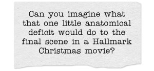 Can you imagine what that one little anatomical deficit would do to the final scenes in all those Hallmark Christmas movies? The beautiful, overachieving young professional