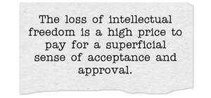 • “Groupthink: No need to expend mental energy to honestly explore facts & consider issues in light of the ultimate impact on vital principles. Losing intellectual freedom: A high price to pay for a superficial sense of acceptance&approval.”  @GallaghersPen (Click here to Tweet)