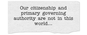Jesus calls us to abandon our allegiance to this world, its value system, and its political shenanigans. Faith in Him involves a new birth (John 3:16 NKJV). Paul reminds us that our citizenship and primary governing authority are not in this world and that our public and private conduct should reflect that.