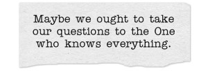 When most of us imperfect followers of Jesus see purportedly “intelligent” elected officials proposing policies that lie somewhere between total foolishness and hopeless insanity, we instinctively utter a heartfelt cry for “someone” to do something about it. But it’s hard to know where to turn or what to do when those hundreds of people sent to Washington, DC to represent us can’t even seem to agree on exactly what the problems are, much less what to do to correct them. Maybe we’re looking for the answer to this confusing and frustrating mess in the wrong place. Maybe we ought to take our questions to the One who knows everything–and just to be clear here, I’m referring to God, not Alexandria Ocasio-Cortez. or any of America’s liberal college sophomores or their self-deified professors.