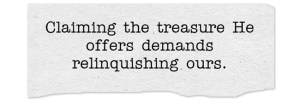 - “If your treasure in Christ is still unclaimed, don’t let the world’s demands distract you until it’s too late. Sometimes a treasure unclaimed truly is a treasure lost forever.” @GallaghersPen (Click here to Tweet)