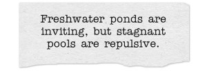 removed, and that kind of downward transformation isn’t reserved for small bodies of water alone. There are other things God created to be life-sustaining sources of blessing and refreshment that depend on a continual influx of life-giving material and a cleansing outflow that removes deadly toxins. If that process is denied, life soon disappears, and what’s left behind loses the appeal it once had.
