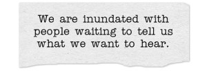 We all want to hear promises of peace and safety and assurances of a prosperous tomorrow, and we are inundated with people waiting to tell us what we want to hear. We