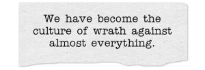 I can’t recall any extended time in my life when the country has been so plagued by anger. Whether it’s valid or not, anger is the most prominent emotion being seen, heard, and felt today. We have become the culture of both real and pretended wrath against almost
