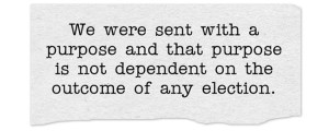 - “We may not know for certain what will happen after November 3rd has come and gone, but we know that we were sent with a purpose, and that purpose is not dependent on the outcome of any election.” @GallaghersPen (Click here to Tweet)