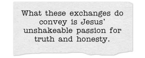 - “These exchanges convey Jesus’ unshakeable passion for truth and honesty regarding spiritual matters and His determination not to allow the desire for public approval to rob that truth of its impact and its power.” @GallaghersPen (Click here to Tweet)