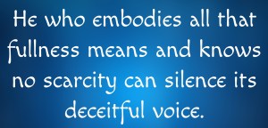 about the best we can do when it comes to predictions. But there’s One Who does know all that’s coming our way and Who offers to confront every minute of that with us. He knows the deprivations we fear, the anxieties we feel, and the circumstances we dread. But He who embodies all that fullness means, and Who knows no scarcity, can silence its deceitful voice.