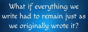 The finished product will include every place we’ve gone, everything we’ve done and all the words, thoughts, and feelings that accompanied them. We can’t opt out, nothing is excluded, and we add another few pages every day. And here’s the kicker . . . The world’s technological geniuses will never be able to offer backspace buttons or delete keys for the strokes we’re adding to that story. The final product will be submitted to the Omniscient Judge of the Universe to determine whether it’s acceptable. Much like the world’s publishers, He will compare our work to the required standard – flawless perfection.