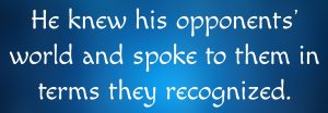 territory sounding like some weird, unintelligible stranger. He knew his opponents’ world and spoke to them in terms they recognized about things their world couldn’t offer. He represented things that were better and more fulfilling, things that were intrinsically good and eternally secure. Charlie told them about a love their world didn’t have and a life that wasn’t filled with loneliness, disappointment, depression, anxiety, and fear.