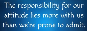 - The responsibility for our attitude lies more with us than we’re prone to admit. Things like joy, optimism, excitement, and self assurance don’t just happen. There are things we can do to promote them . . . @GallaghersPen (Click here to Tweet)