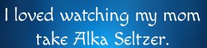 The other experience I loved was watching my mom take Alka Seltzer for what she called “heartburn”. I wasn’t sure how her heart got on fire in the first place, but I was always rather glad it did because watching her drop those pills into a glass of water was