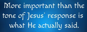 The language in our English Bibles doesn’t convey the tone of Jesus’ response. He was very likely angry but at the least, His comment was very intense. The word, “rebuked,” that Luke used, for instance, is the same word often used in describing Jesus’ engagement with