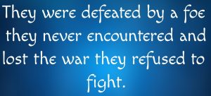 Wars are always awful and no sane person wants the suffering and devastation that comes with them, but in spite of that, they are sometimes unavoidable. Peace would be easy and wars unnecessary in a world with no greed, no prejudice, no hatred, no selfish ambition, no inordinate lust, no arrogance, no unprovoked animosity, and where pleasure is a blessing to be enjoyed and not a god to be worshipped. But a world like that doesn’t exist, at least not yet. The world Jesus was born into, and into which He dispatched us as His representatives, is filled with forces that despise and oppose everything about Him and the God He embodies. That hatred is transmitted toward all those who believe in Him, follow Him, love Him, and endeavor to be like Him and live out the values He taught. Because of that, conflict is commonplace, and wars of one kind or another will continue until Jesus returns to complete the establishment of His Kingdom.